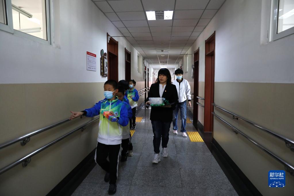 5月18日,莊巖帶著(zhù)學(xué)生走在走廊里,準備去上手工美術(shù)課。