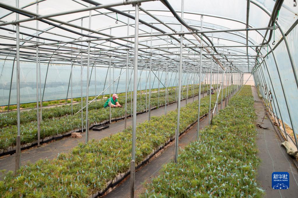 5月20日,在伊春森工集團紅松種苗繁育基地,工作人員在養護輕基質(zhì)紅松嫁接苗。