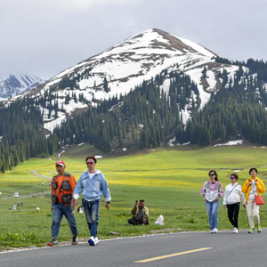 5月19日,游客在位于新疆新源縣的那拉提旅游風(fēng)景區觀(guān)光。