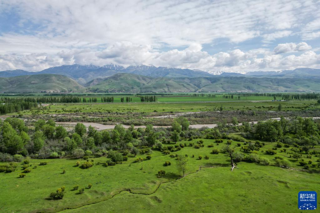 5月20日拍攝的那拉提河谷草原風(fēng)光(無(wú)人機照片)。
