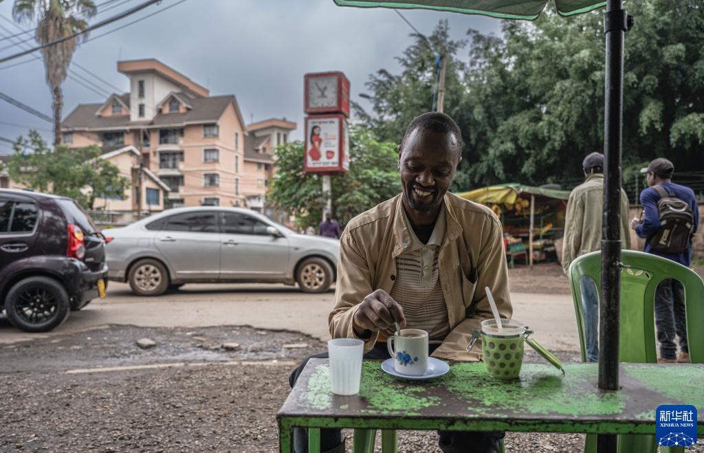 這是2023年5月17日,市民在肯尼亞內羅畢街邊飲用奶茶。