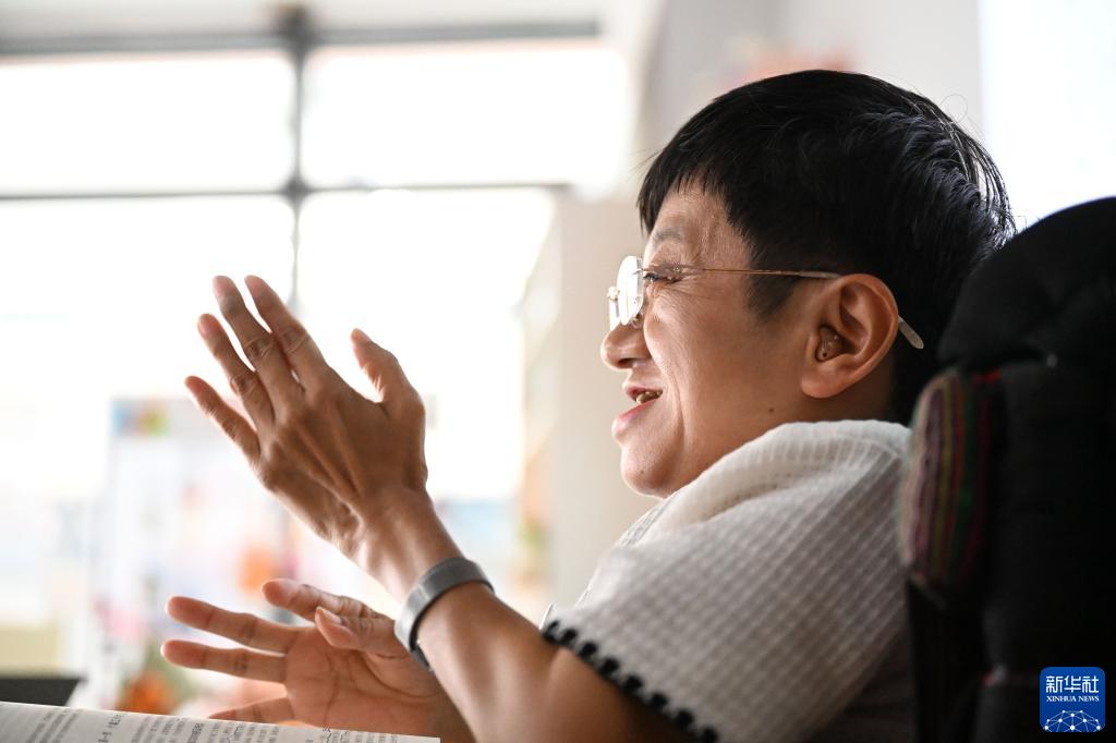 在天津市太陽(yáng)語(yǔ)罕見(jiàn)病心理關(guān)懷中心,魏瑞紅和病友交流(5月17日攝)。