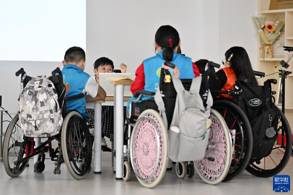 在天津市太陽(yáng)語(yǔ)罕見(jiàn)病心理關(guān)懷中心,魏瑞紅跟病友交流(5月17日攝)。
