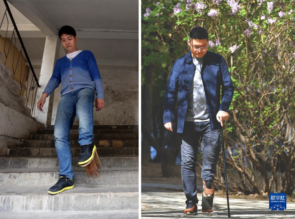 拼版照片: 左圖為2014年4月16日,趙強在社區走訪(fǎng)(新華社記者姚劍鋒攝攝);右圖為2023年4月18日,趙強在小區內散步(新華社記者楊青攝)。