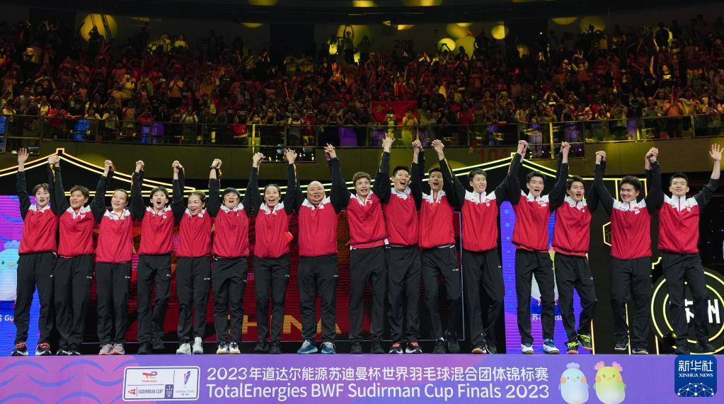 當日,2023年蘇迪曼杯世界羽毛球混合團體錦標賽頒獎儀式在江蘇省蘇州市舉行。中國隊在決賽中以3比0戰勝韓國隊,奪得冠軍。