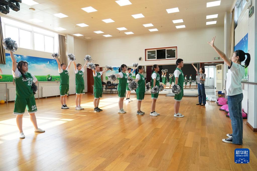 在北京市健翔學(xué)校,舞蹈團的學(xué)生在訓練(5月18日攝)。