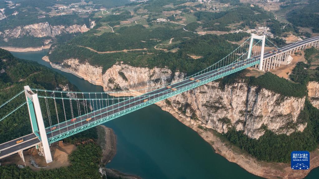 當日,由貴州路橋集團承建的金烽烏江大橋進(jìn)行靜態(tài)荷載試驗,48輛負載砂石的大型貨車(chē)有序行駛到固定的位置進(jìn)行對稱(chēng)、偏心檢測,檢驗橋梁結構整體的施工質(zhì)量與受力性能,為橋梁竣工驗收提供科學(xué)依據。