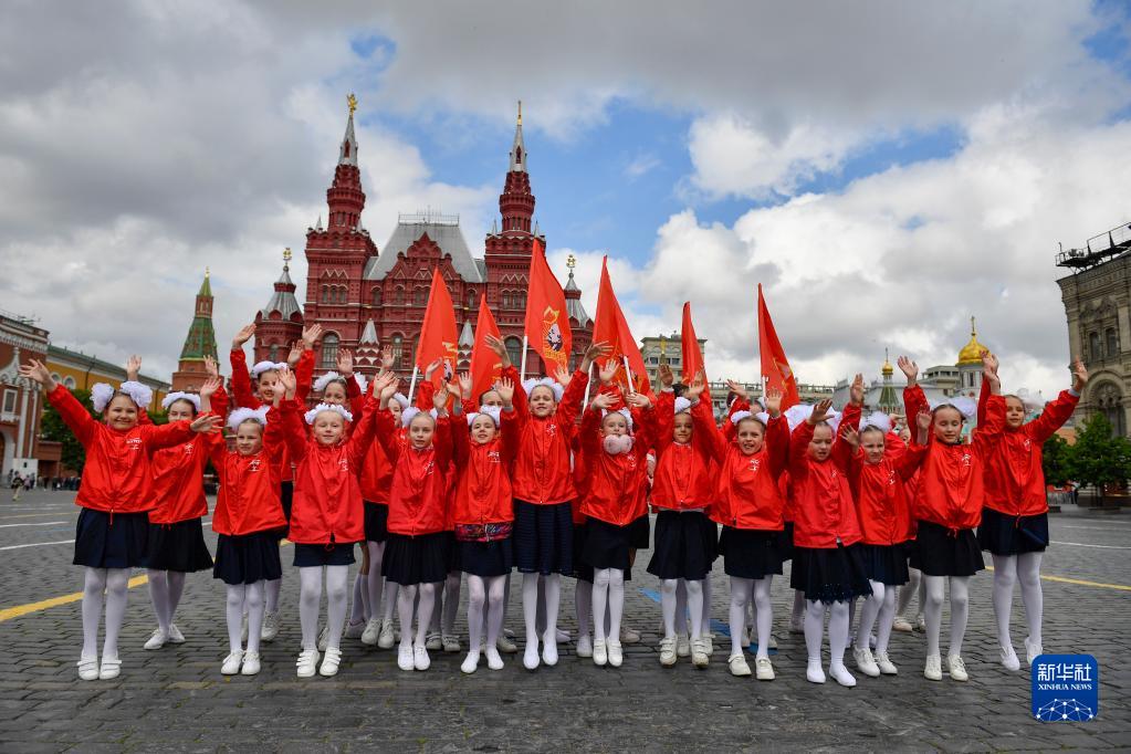 當日,俄羅斯莫斯科舉行少先隊員入隊儀式,紀念少年先鋒隊成立101周年。