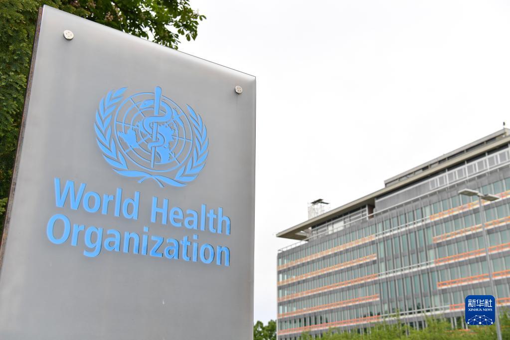 這是5月21日在瑞士日內瓦拍攝的世界衛生組織標志和世衛組織總部大樓。