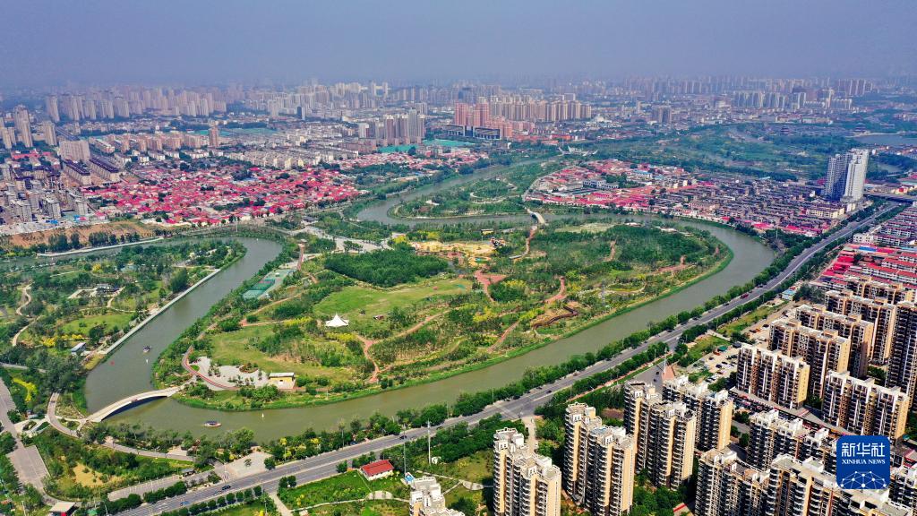 滄州大運河生態(tài)修復展示區(5月16日攝,無(wú)人機照片)。