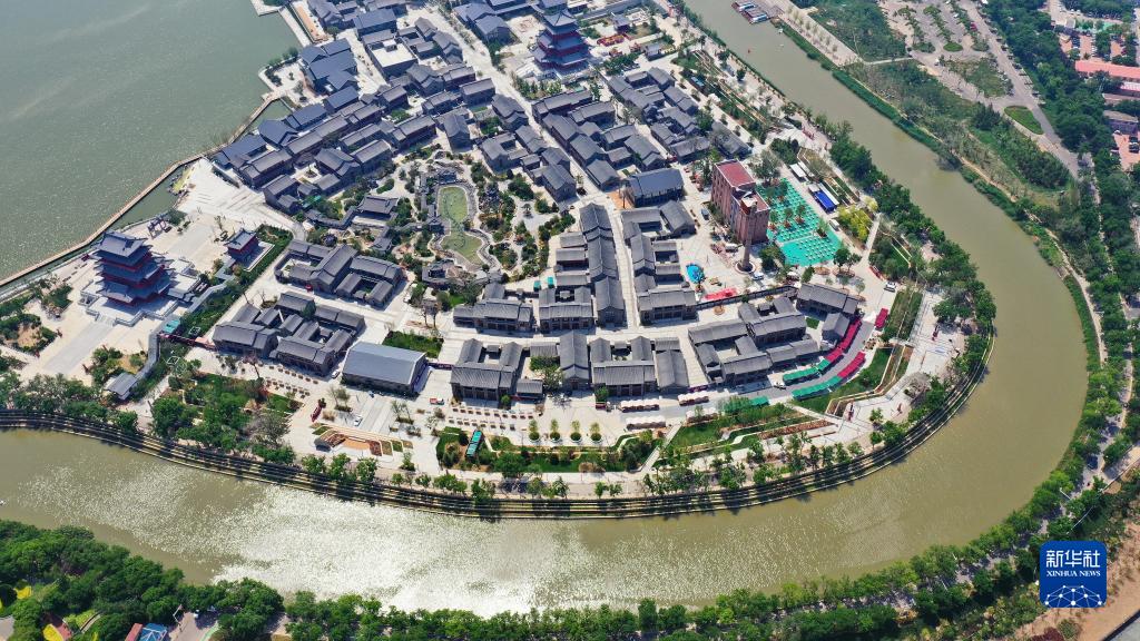 滄州市區境內的京杭大運河河道(5月16日攝,無(wú)人機照片)。