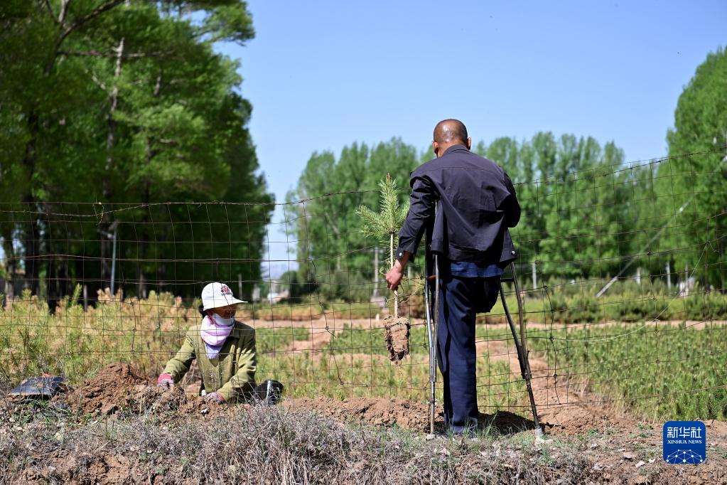 在山西省右玉縣薛家堡村,護林員馬裕向村民宣傳林業(yè)防火常識(5月18日攝)。