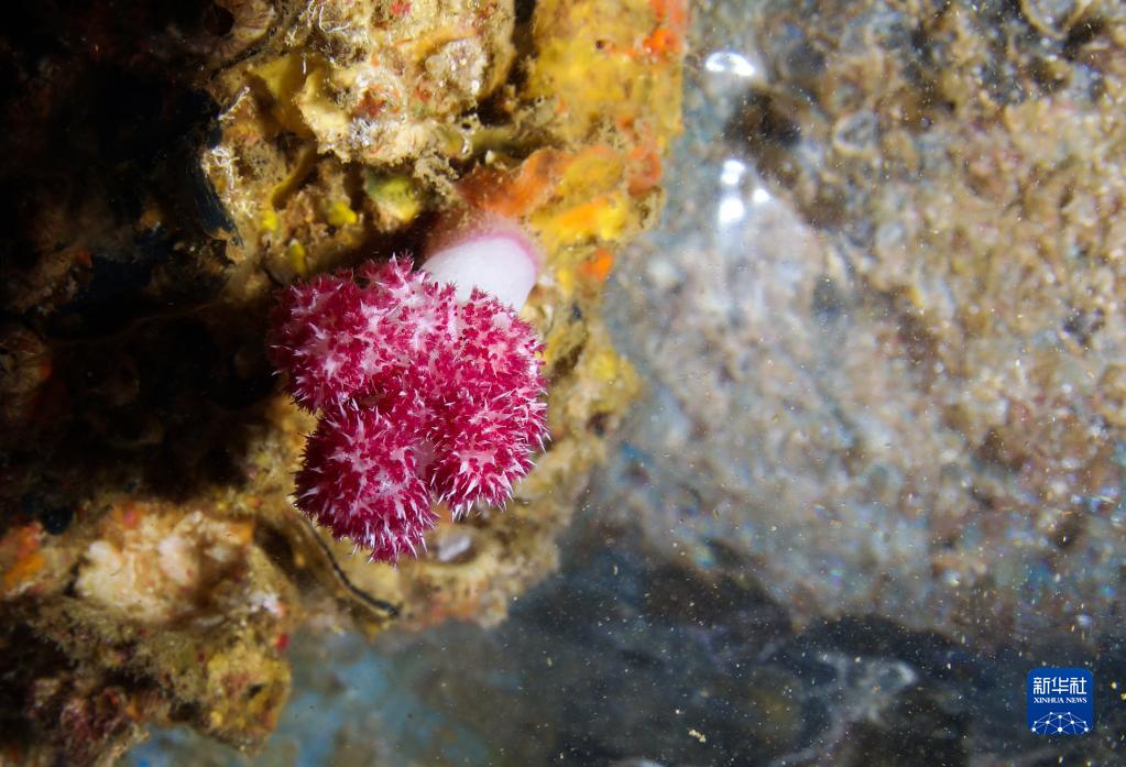 這是在蜈支洲島海域海洋牧場(chǎng)沉船魚(yú)礁內拍攝的軟珊瑚(5月16日攝)。