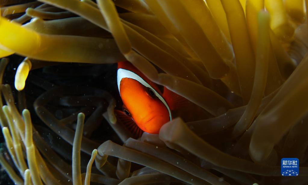 這是在蜈支洲島海域海洋牧場(chǎng)拍攝的小丑魚(yú)(5月17日攝)。