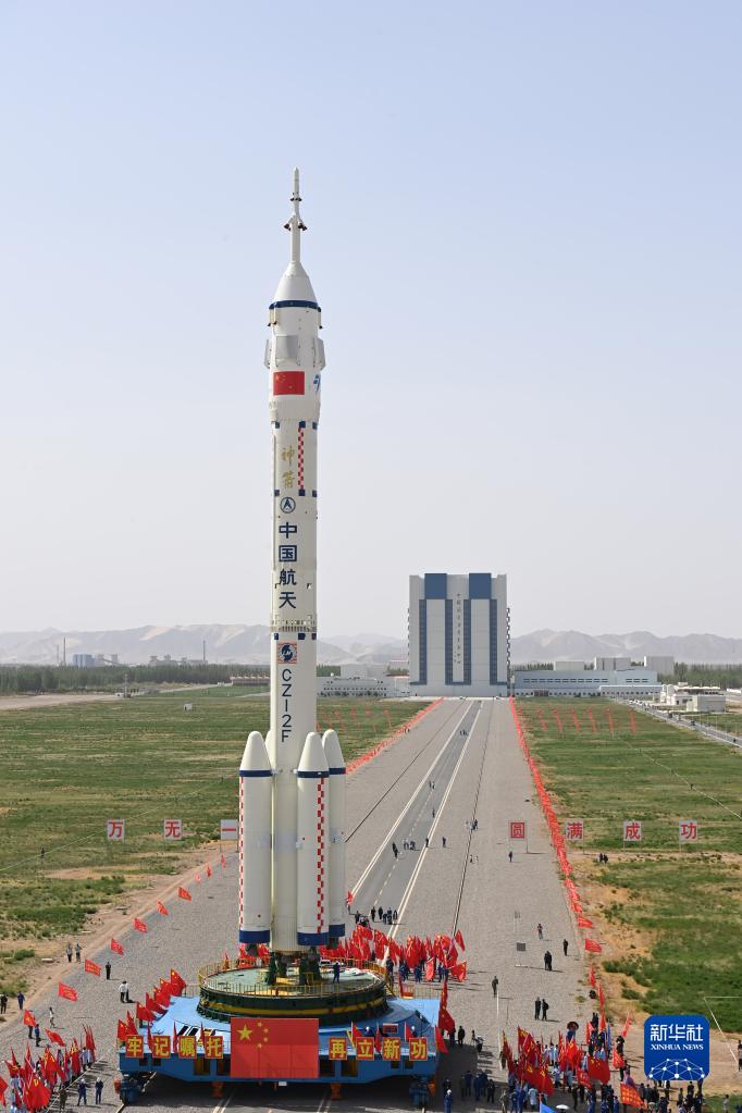 5月22日,神舟十六號載人飛船與長(cháng)征二號F遙十六運載火箭組合體在轉運途中。