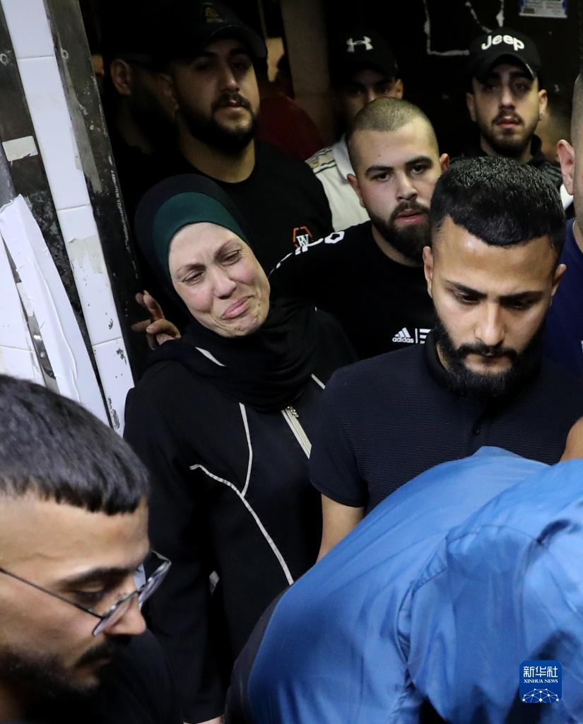 5月22日,在約旦河西岸城市納布盧斯一家醫院,家屬哀悼死去的親人。