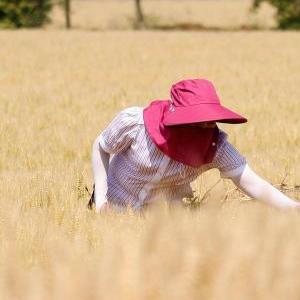 5月23日,農民在泗洪縣龍集鎮勒東村麥田里除雜。