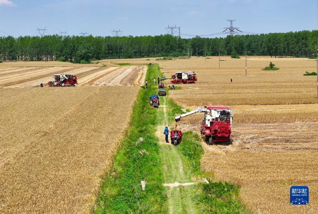 近日,河南省小麥主產(chǎn)區南陽(yáng)市小麥進(jìn)入成熟期,當地農業(yè)部門(mén)搶抓農時(shí),組織收割機開(kāi)展夏收作業(yè),收割小麥。