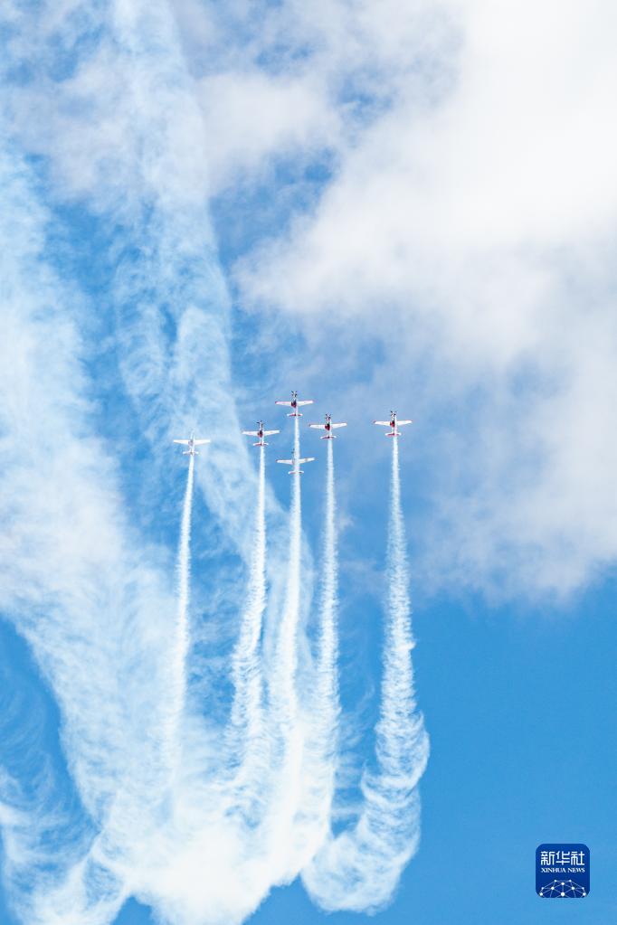 5月23日,在馬來(lái)西亞蘭卡威舉行的第16屆蘭卡威國際海事和航空展上,飛行表演隊進(jìn)行特技飛行表演。