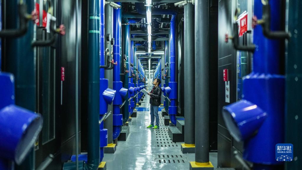 工作人員在中國聯(lián)通貴安數據中心對微模塊機房運行狀態(tài)進(jìn)行巡檢(5月23日攝)。