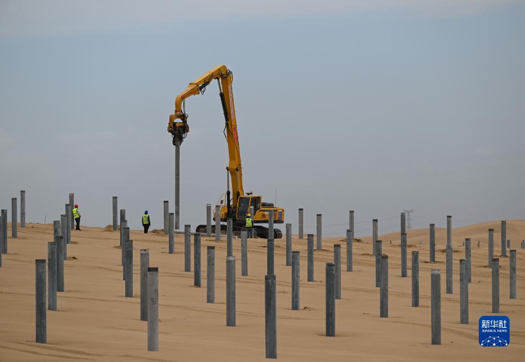 近日,位于內蒙古達拉特旗的全球最大“沙戈荒”風(fēng)電光伏基地正在有序建設中。數百臺大型機械工程車(chē)輛在庫布其沙漠中施工建設,場(chǎng)面壯觀(guān)。據了解,該項目由三峽集團聯(lián)合內蒙古能源集團開(kāi)工建設,先導工程為100萬(wàn)千瓦光伏發(fā)電項目。