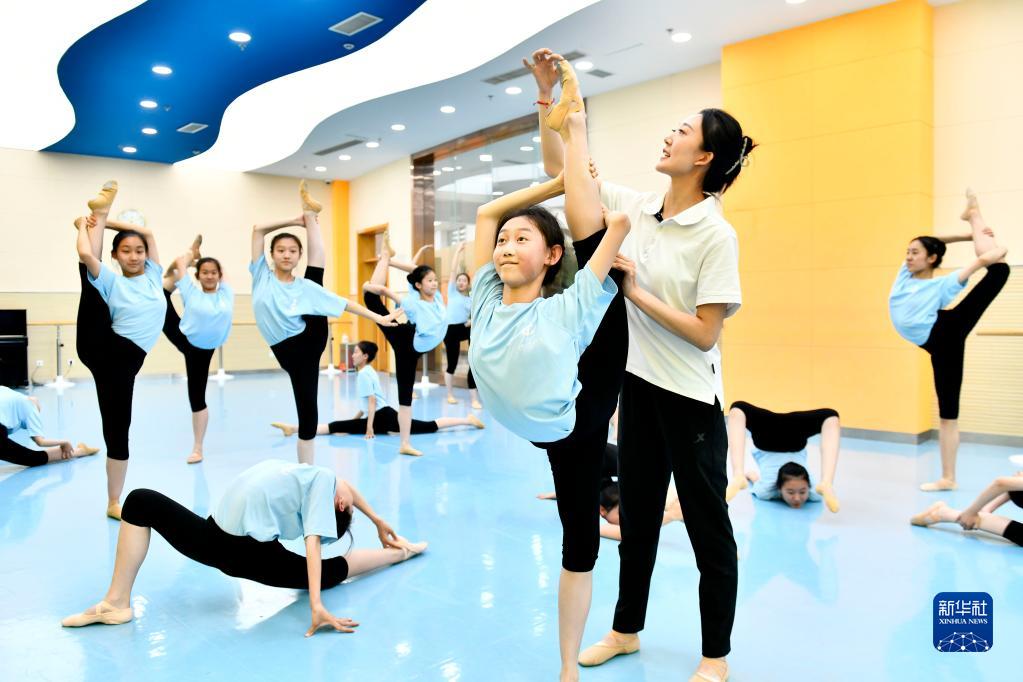 5月23日,在濟南市歷城二中聞韶藝術(shù)館,于恩賜老師帶著(zhù)同學(xué)們練習基本功。