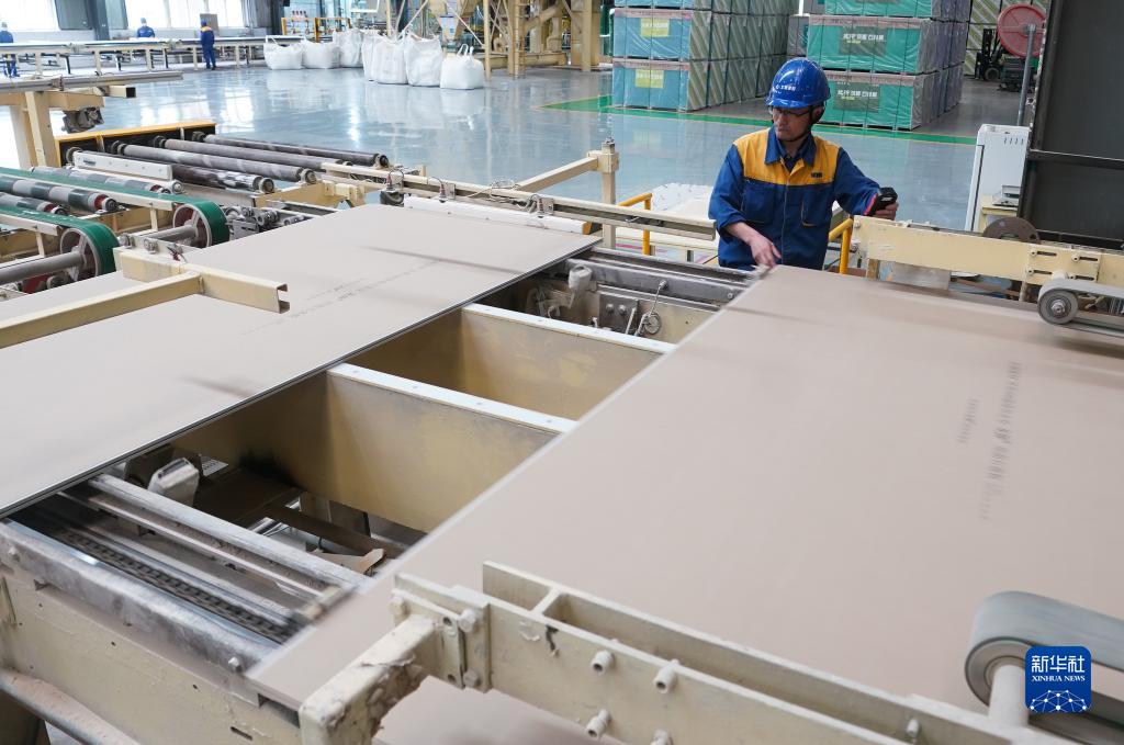 5月24日,在下蜀高新技術(shù)產(chǎn)業(yè)園內的一家建材企業(yè),工人在石膏板生產(chǎn)線(xiàn)忙碌。