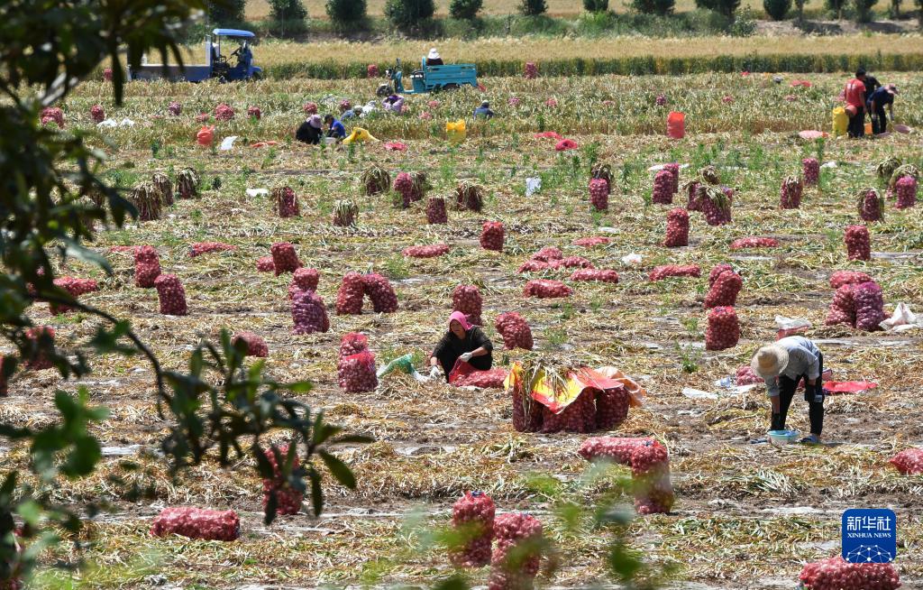 近日,河南省鄭州市中牟縣的大蒜迎來(lái)收獲季。據了解,今年中牟縣大蒜種植面積24.7萬(wàn)畝,將于月底結束收獲。