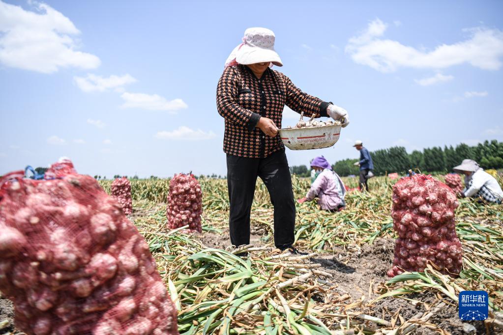 近日,河南省鄭州市中牟縣的大蒜迎來(lái)收獲季。據了解,今年中牟縣大蒜種植面積24.7萬(wàn)畝,將于月底結束收獲。