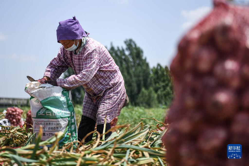 近日,河南省鄭州市中牟縣的大蒜迎來(lái)收獲季。據了解,今年中牟縣大蒜種植面積24.7萬(wàn)畝,將于月底結束收獲。