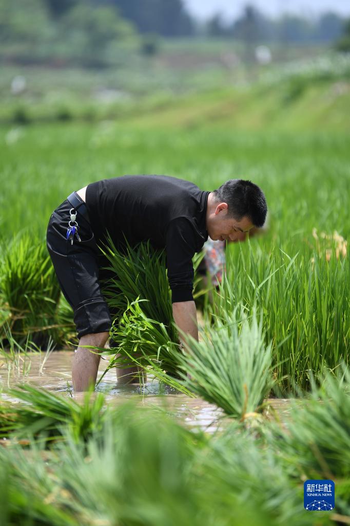 5月24日,村民在達州達川區大樹(shù)鎮田里勞作。