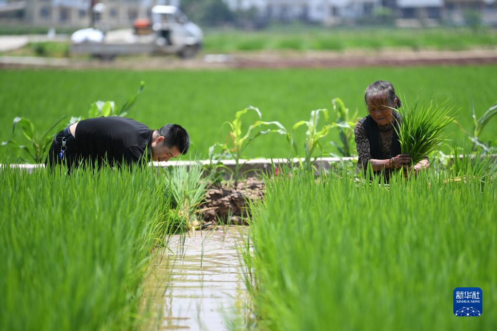 初夏時(shí)節,四川省達州市達川區農田郁郁蔥蔥,村民在田間勞作,構成一片綠意盎然的初夏田園景觀(guān)。