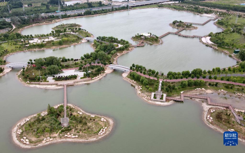 這是河北省沙河市荷花湖公園(5月24日攝,無(wú)人機照片)。