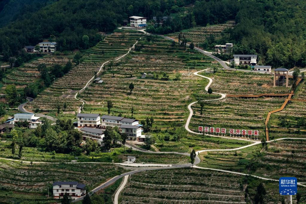 這是5月24日拍攝的位于南江縣國家現代農業(yè)產(chǎn)業(yè)園內的金銀花種植基地。