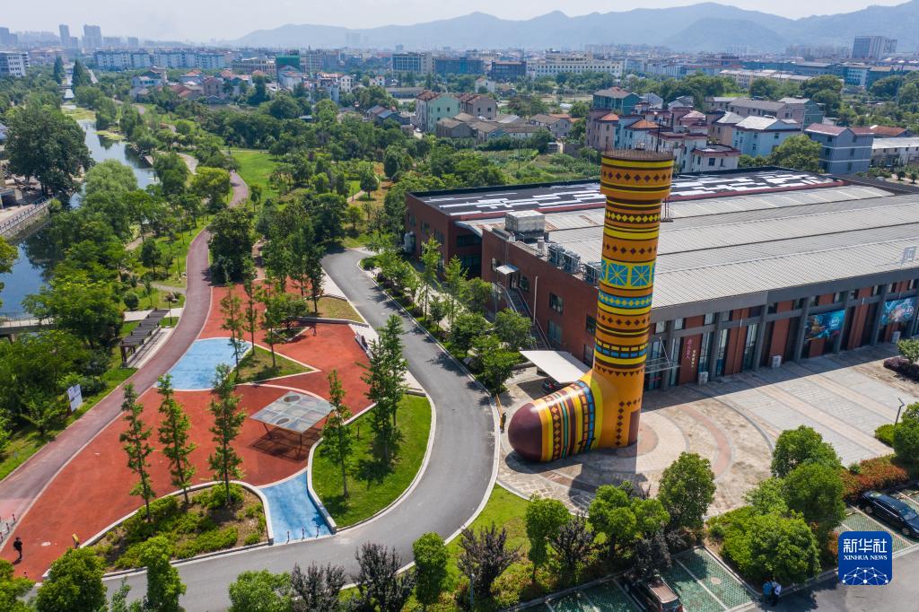 空中俯瞰位于浙江省諸暨市大唐街道的襪藝小鎮(5月25日攝,無(wú)人機照片)。