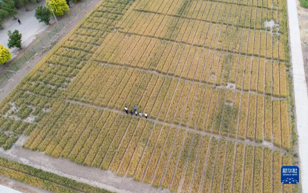 這是5月25日拍攝的河北滄州渤海新區黃驊市中捷產(chǎn)業(yè)園區農科所旱堿麥繁種試驗田(無(wú)人機照片)。