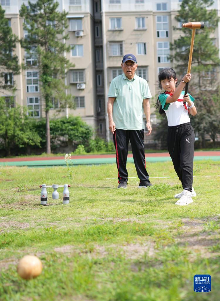 5月25日,小學(xué)生在教練帶領(lǐng)下學(xué)習木球。