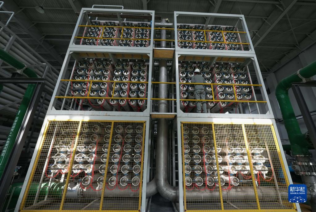 5月25日,工人在唐山市海港經(jīng)濟開(kāi)發(fā)區海水淡化項目投產(chǎn)的淡水生產(chǎn)車(chē)間工作。