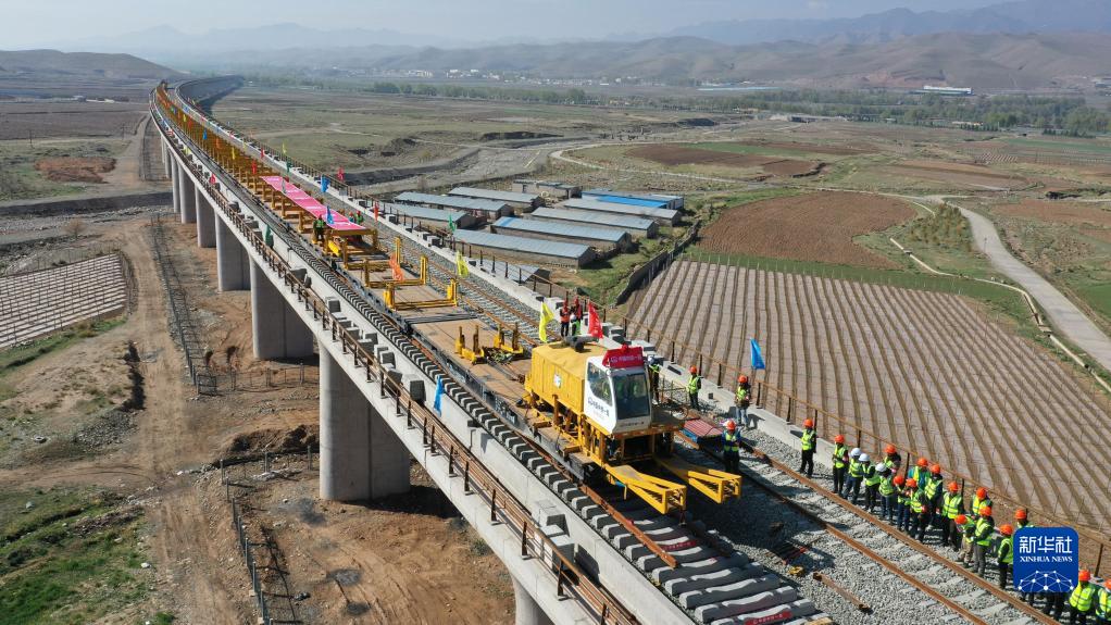 當日,在甘肅省武威市天祝藏族自治縣境內蘭(蘭州)張(張掖)三四線(xiàn)鐵路鋪軌施工現場(chǎng),一體式牽引車(chē)在中鐵一局施工人員的操作下,將一組500米長(cháng)的鋼軌精準鋪設在道床上,標志著(zhù)由中鐵一局承建的蘭張三四線(xiàn)鐵路蘭州至武威段進(jìn)入全線(xiàn)鋪軌階段。