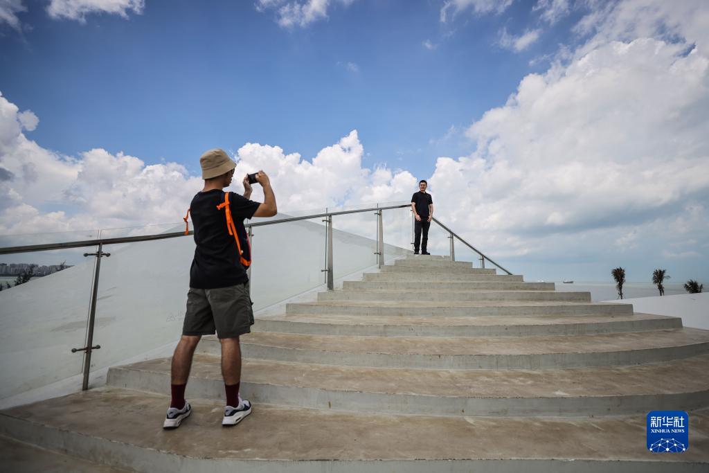 炎炎夏日,??跒场疤炜罩健斌A站綿延起伏的屋頂在海邊蜿蜒,形成一道靚麗的風(fēng)景線(xiàn)?!疤炜罩健斌A站包含圖書(shū)館、咖啡廳、展覽區等業(yè)態(tài)布局,并嵌入藝術(shù)和小型演出功能,滿(mǎn)足市民游客的精神文化需求。作為???6個(gè)濱海驛站項目之一,“天空之山”驛站啟用后成為??谛碌貥?,吸引諸多游客前來(lái)打卡。