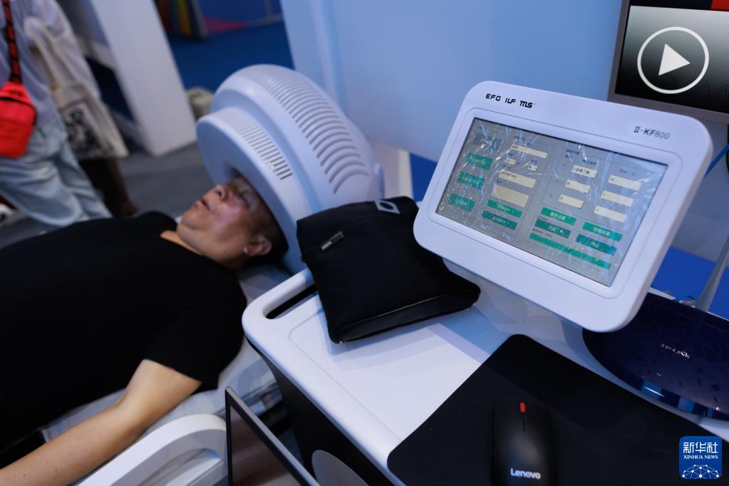 5月26日,觀(guān)眾在數博會(huì )現場(chǎng)體驗睡眠診療設備。