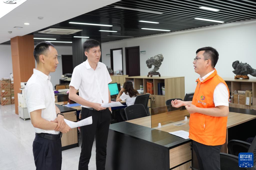 5月26日,“徽商義警”張勤波(右)在一家徽商企業(yè)走訪(fǎng),了解其在運營(yíng)中遇到的問(wèn)題。成立于2020年的諸暨市公安局徽商警企聯(lián)絡(luò )室由徽商代表組成,目前共有210名“徽商義警”,為在諸暨經(jīng)商務(wù)工的7.5萬(wàn)名同鄉提供經(jīng)濟、治安類(lèi)調解服務(wù)。