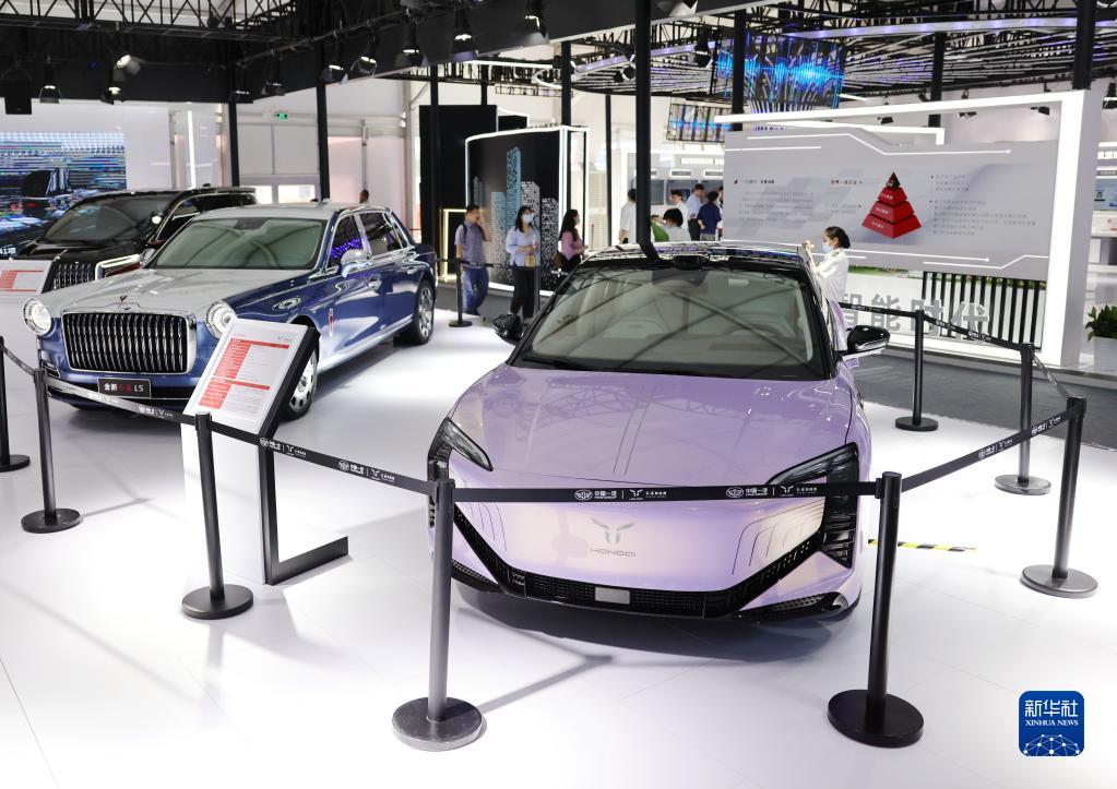 這是5月26日在中關(guān)村論壇展覽(科博會(huì ))上拍攝的新能源汽車(chē)。