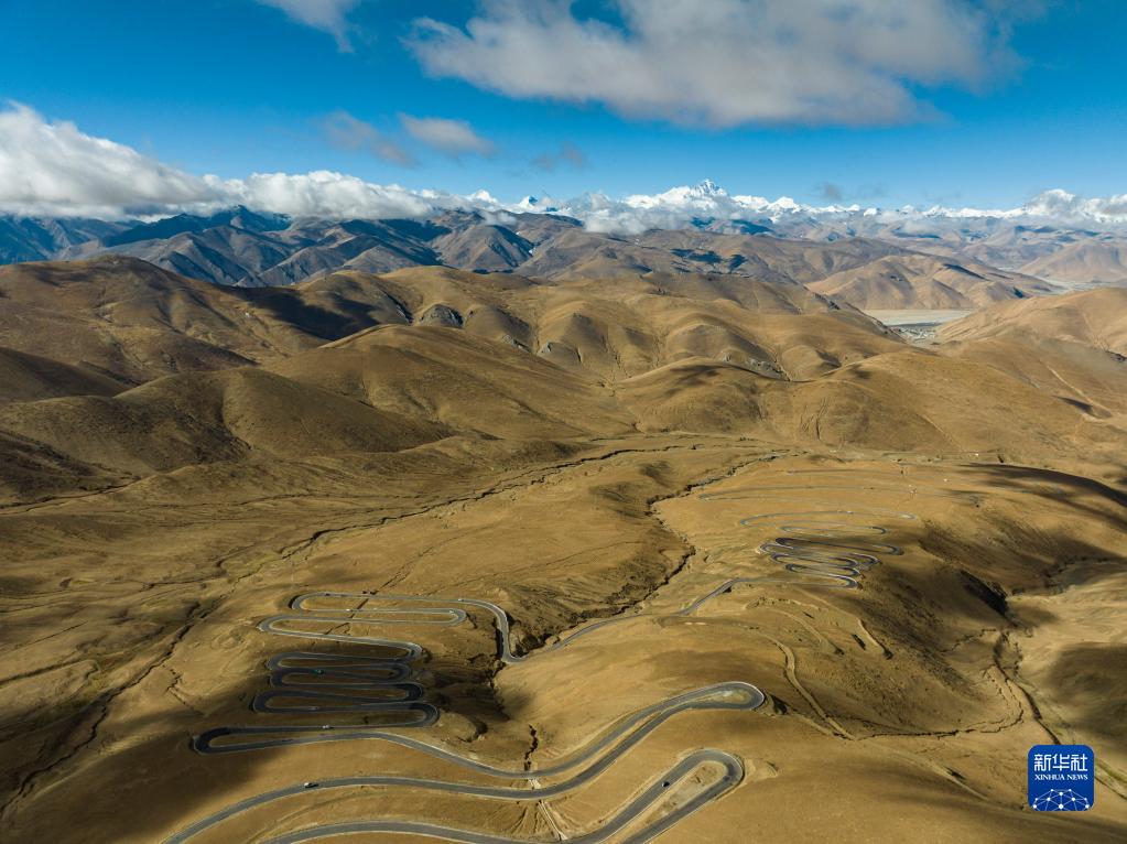 這是在海拔6000米左右高空拍攝的通往珠峰的公路(5月26日攝,無(wú)人機照片)。