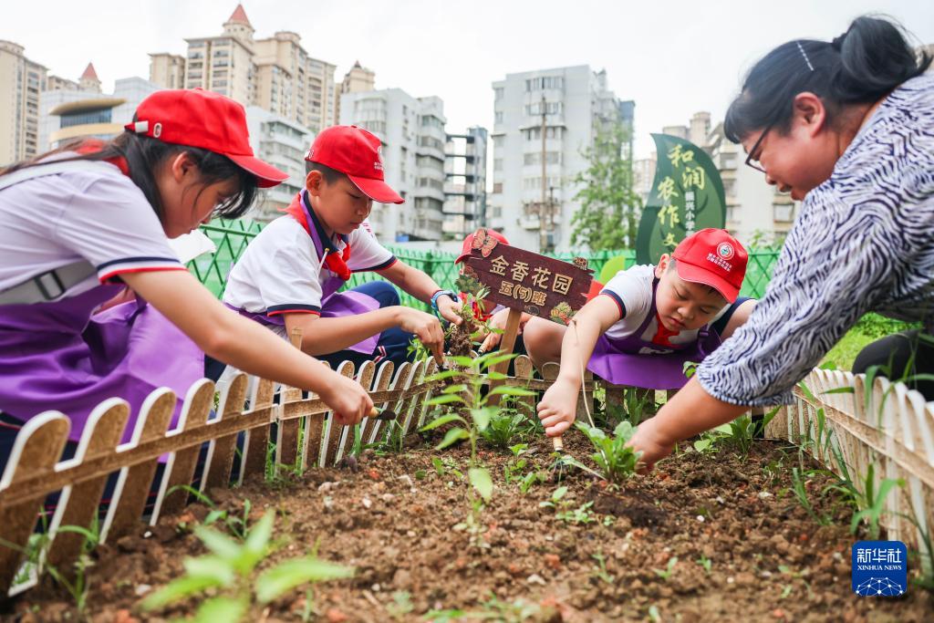 5月26日,學(xué)生在老師帶領(lǐng)下體驗農作物培育實(shí)踐活動(dòng)。