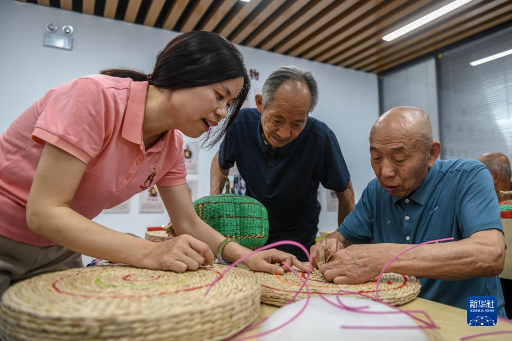 5月26日,老師在孝里街道社區黨群服務(wù)中心內指導遷居村民學(xué)習編織技藝。