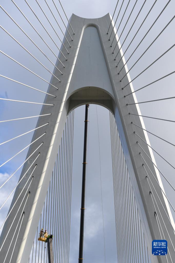 5月25日,建筑工人在鷺洲大橋上進(jìn)行施工。