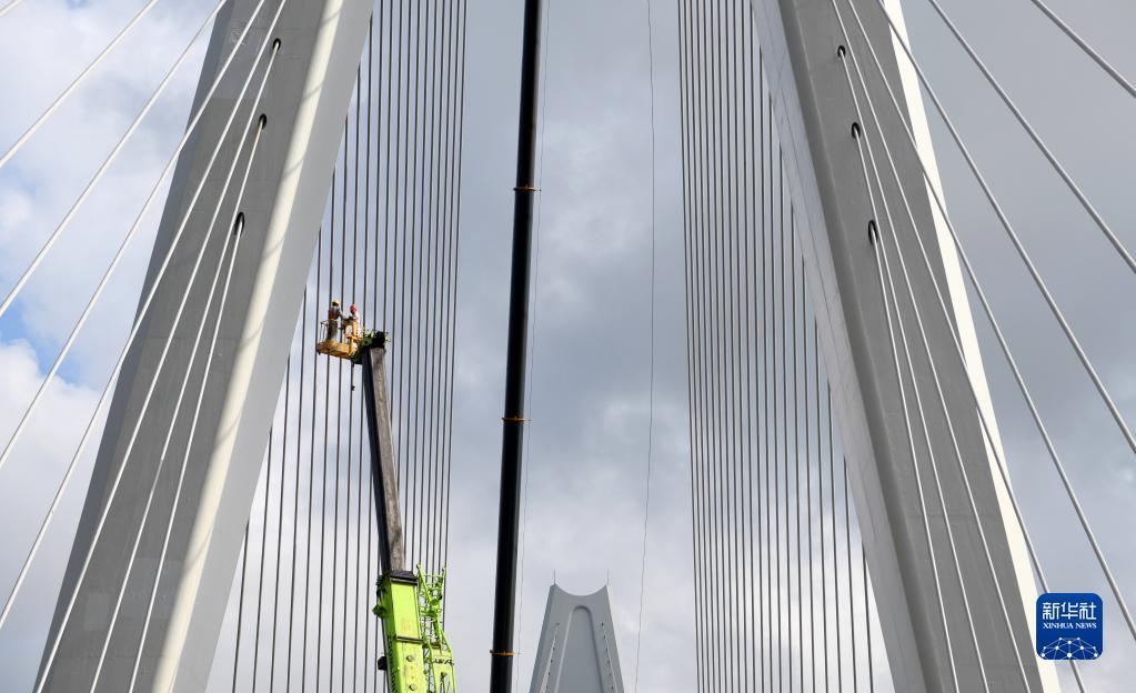 5月25日,建筑工人在鷺洲大橋上進(jìn)行施工。