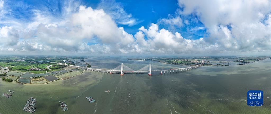 5月25日拍攝的建設中的鷺洲大橋(無(wú)人機全景照片)。