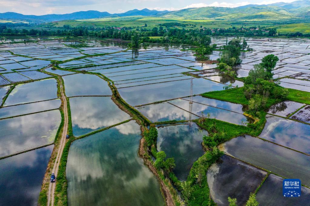 這是5月20日在北馬其頓東部科查尼地區拍攝的稻田。
